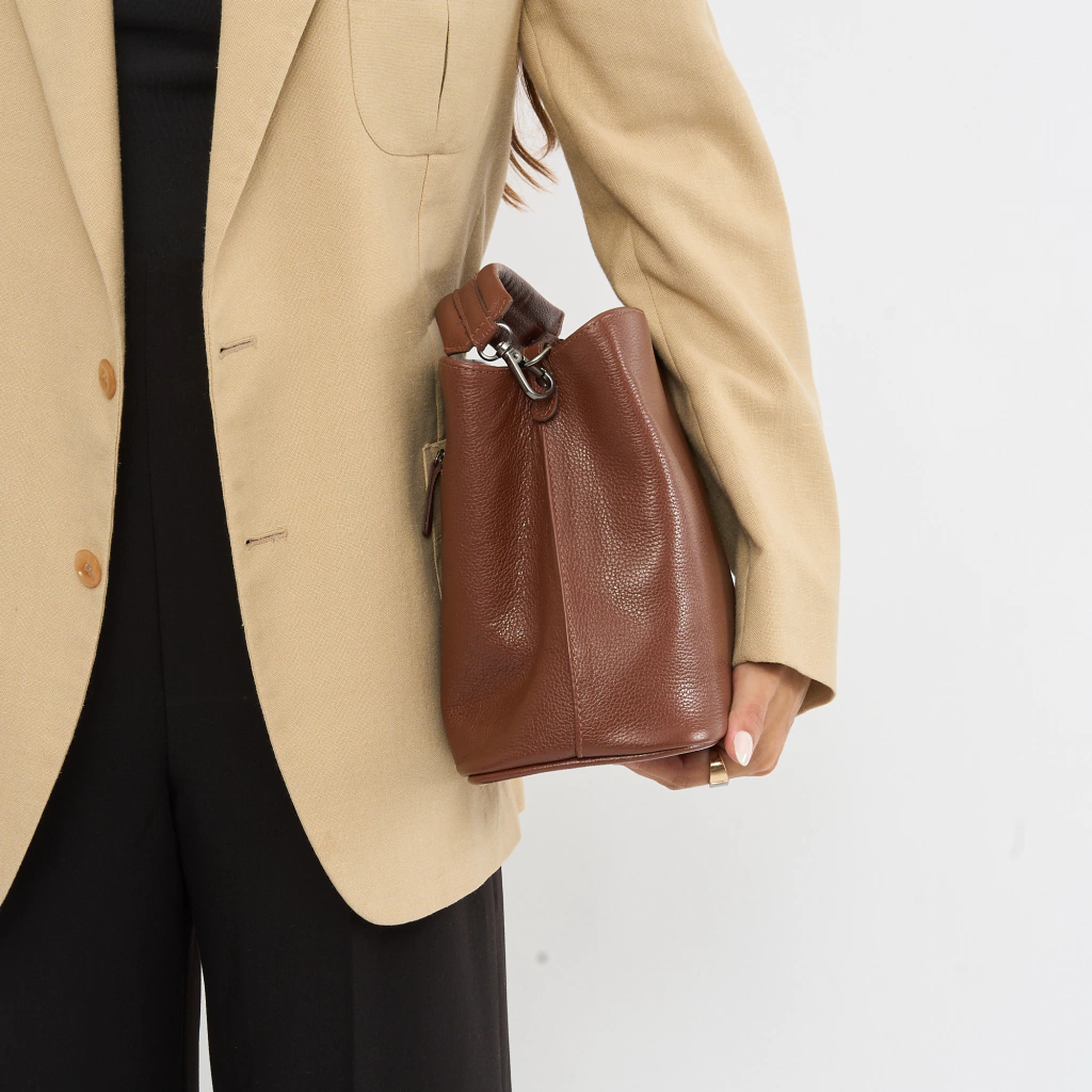 A Bolsa Baú Irisa combina versatilidade e elegância. Possui duas alças, uma delas regulável e ambas as alças removíveis, proporcionando diferentes estilos. O fechamento em zíper garante praticidade e segurança. Além disso, conta com um bolso interno e outro externo, bem como uma divisória interna, adicionando funcionalidade ao seu design. Perfeita para quem busca uma bolsa adaptável às diversas ocasiões com sofisticação.