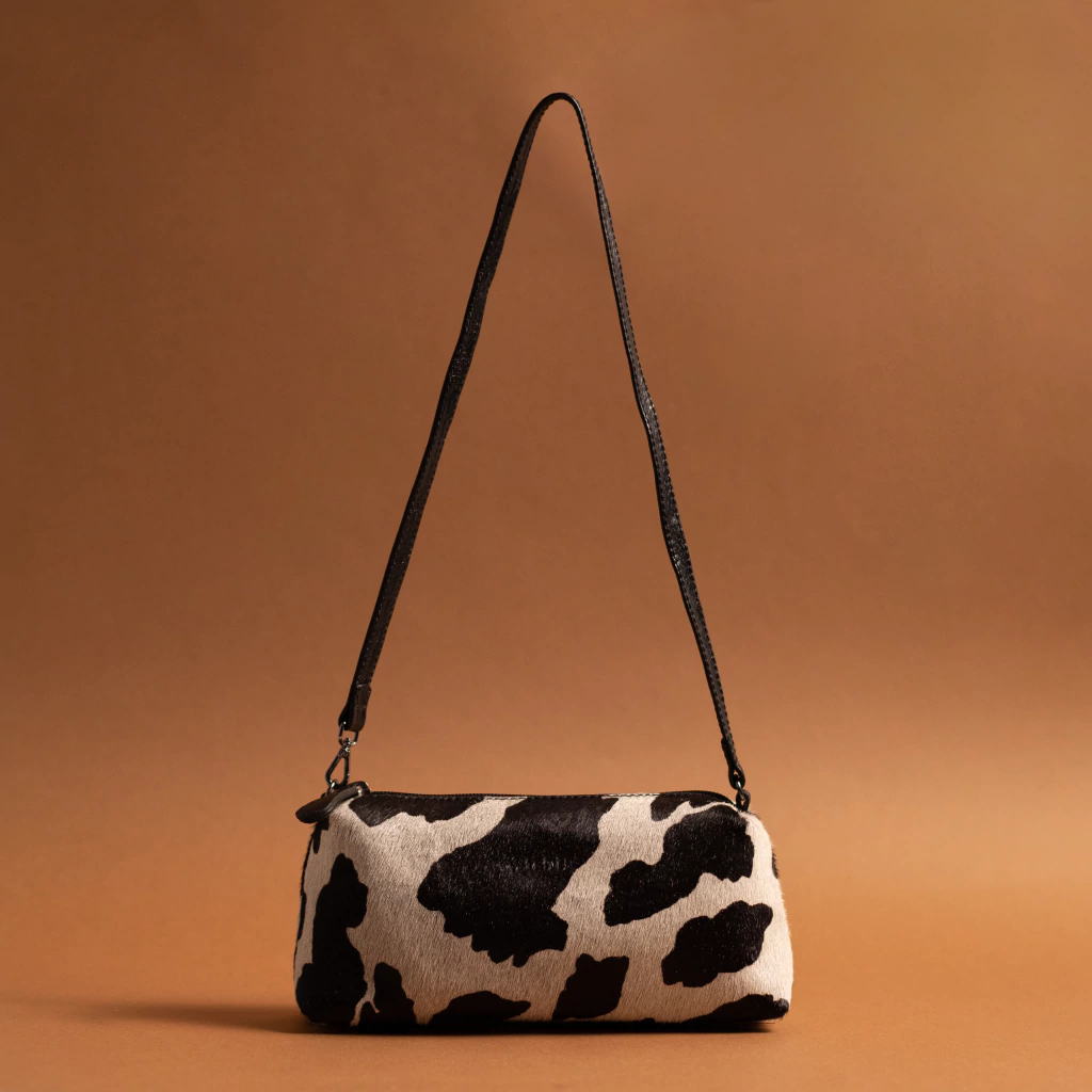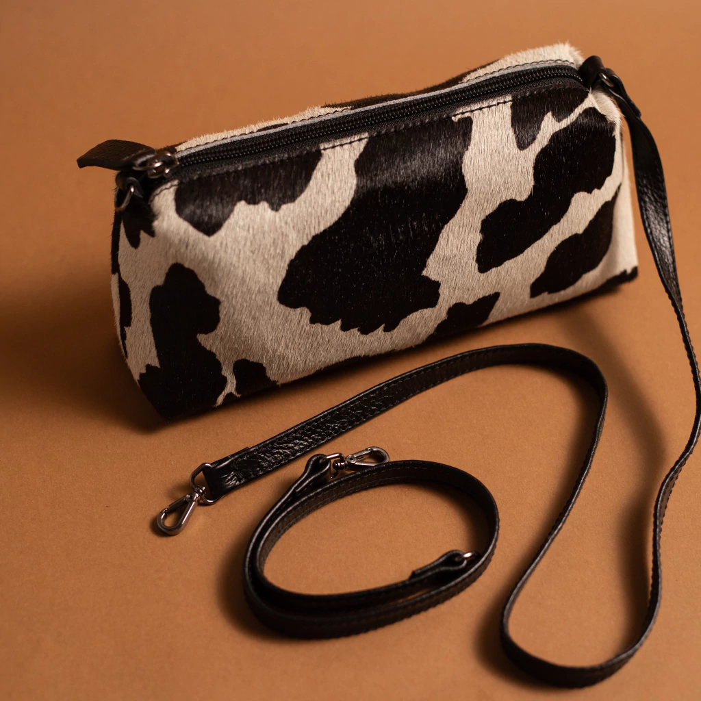Bolsa Leone confeccionada em couro com estampa animal print. Modelo estruturado em formato retangular, com fechamento superior em zíper. Possui alça fina regulável e removível em couro liso, permitindo o uso tanto a tiracolo quanto transversal. Conta com forro interno e espaço ideal para guardar itens essenciais do dia a dia. Design moderno e compacto, que une praticidade e estilo.