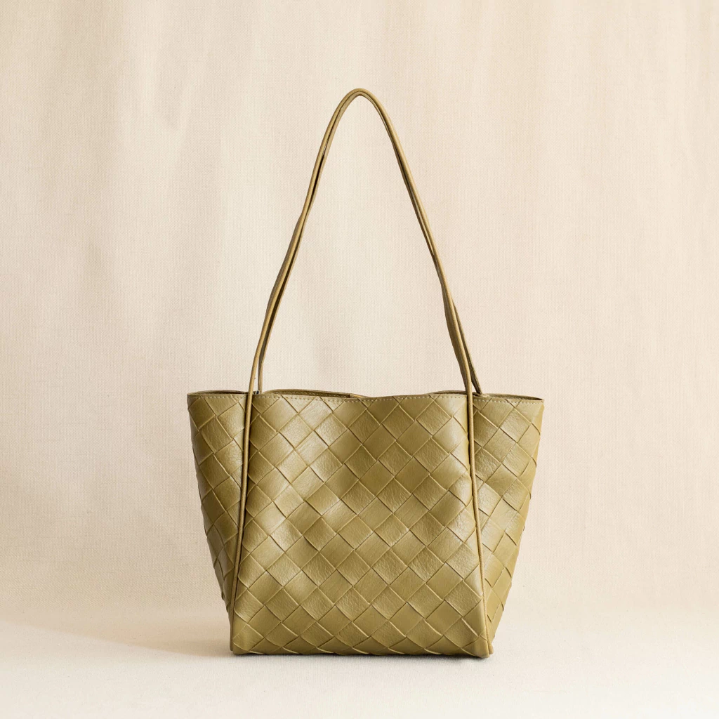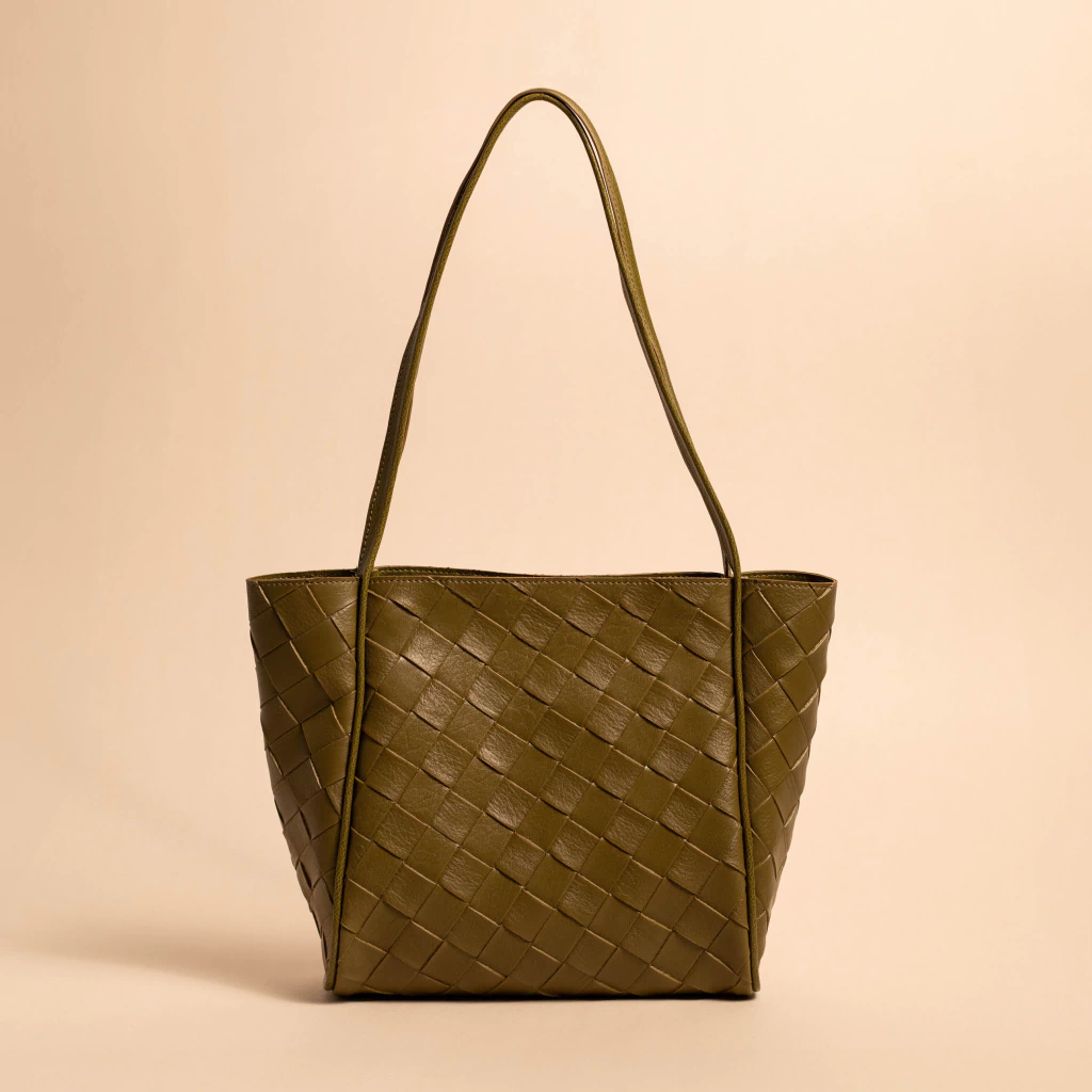 Bolsa Tote Dri, confeccionada em material sintético com acabamento tramado que remete ao efeito de couro trançado. O modelo possui estrutura maleável, formato retangular e alças duplas fixadas na parte superior, permitindo o uso no ombro. O fechamento da bolsa é por zíper. A costura é discreta e reforçada, garantindo durabilidade ao produto.
