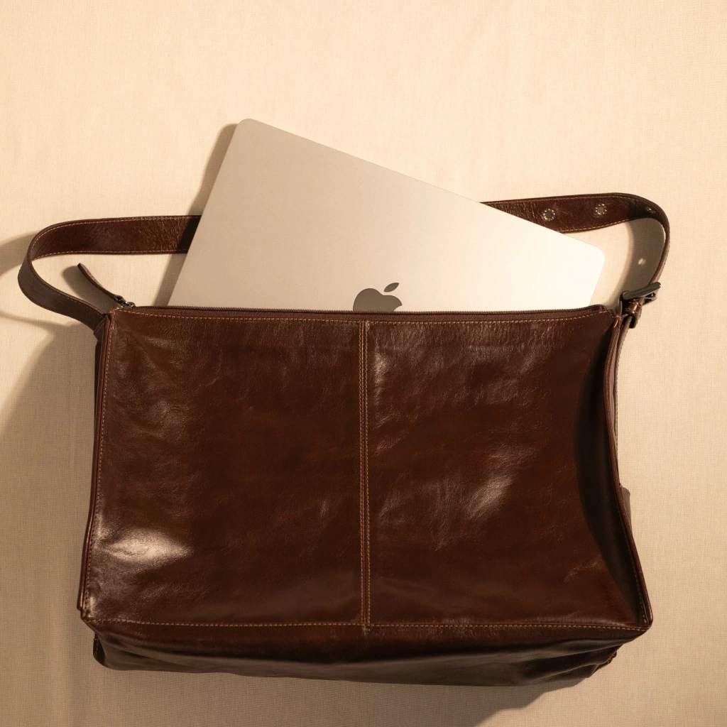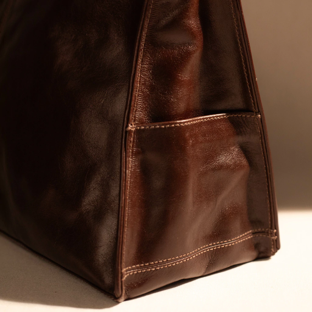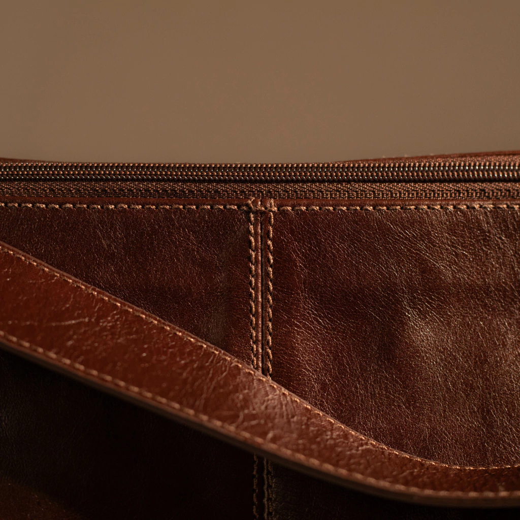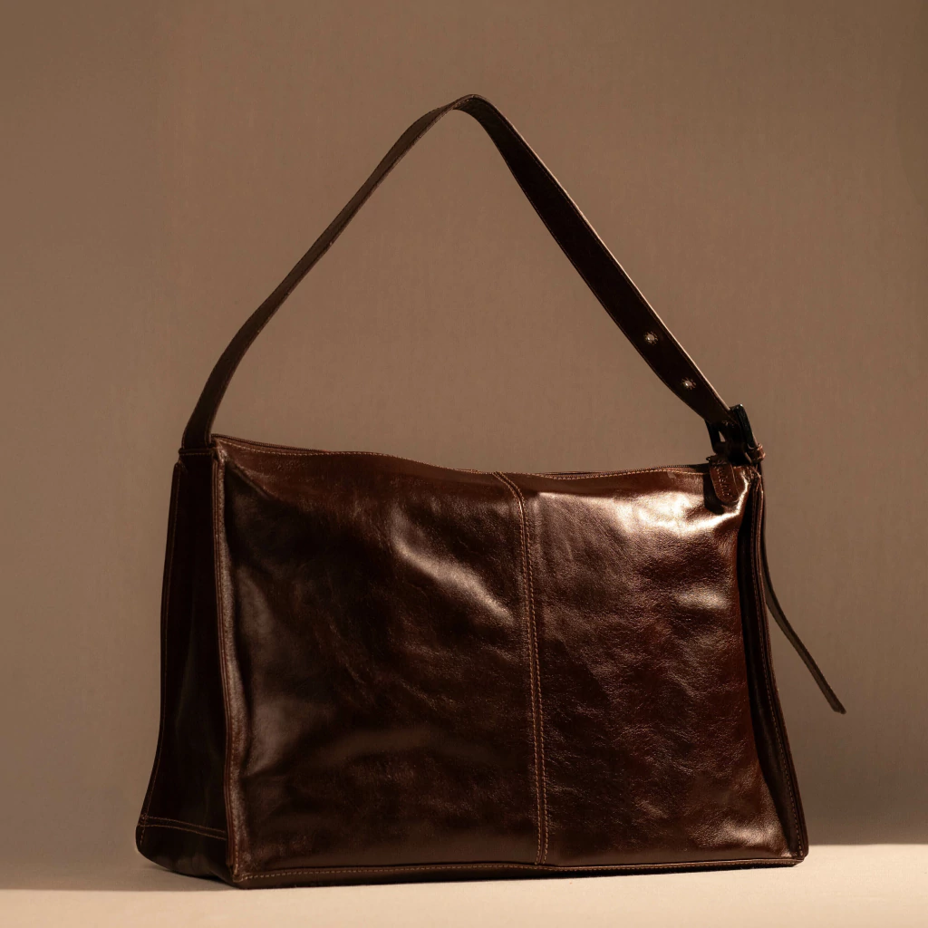 A Bolsa Valletta é confeccionada em couro legítimo, com textura natural e toque macio. Possui alça única com regulagem e aplicação de ilhós metálicos. Conta com fechamento em zíper na parte superior, bolsos laterais externos e compartimento interno amplo, com forro têxtil e divisões para organização. Apresenta estrutura firme e acabamento reforçado nas costuras.