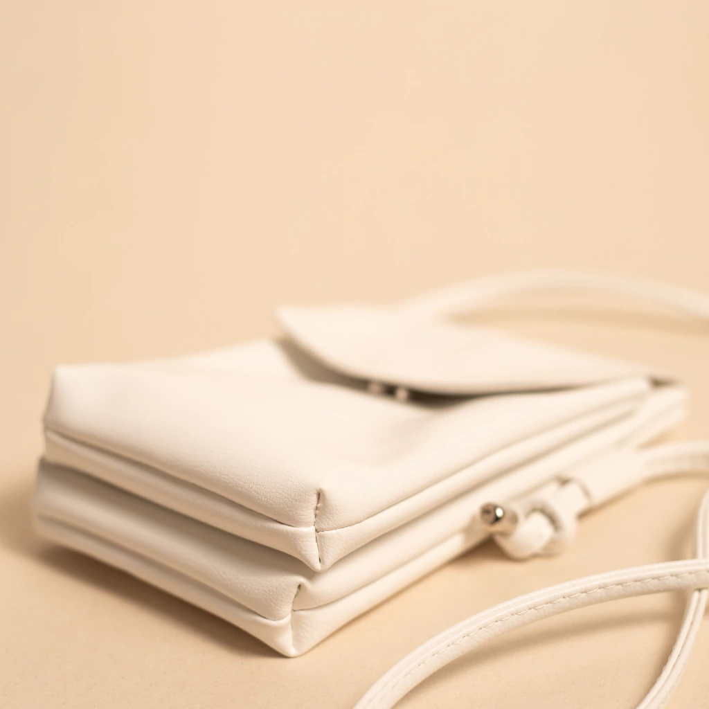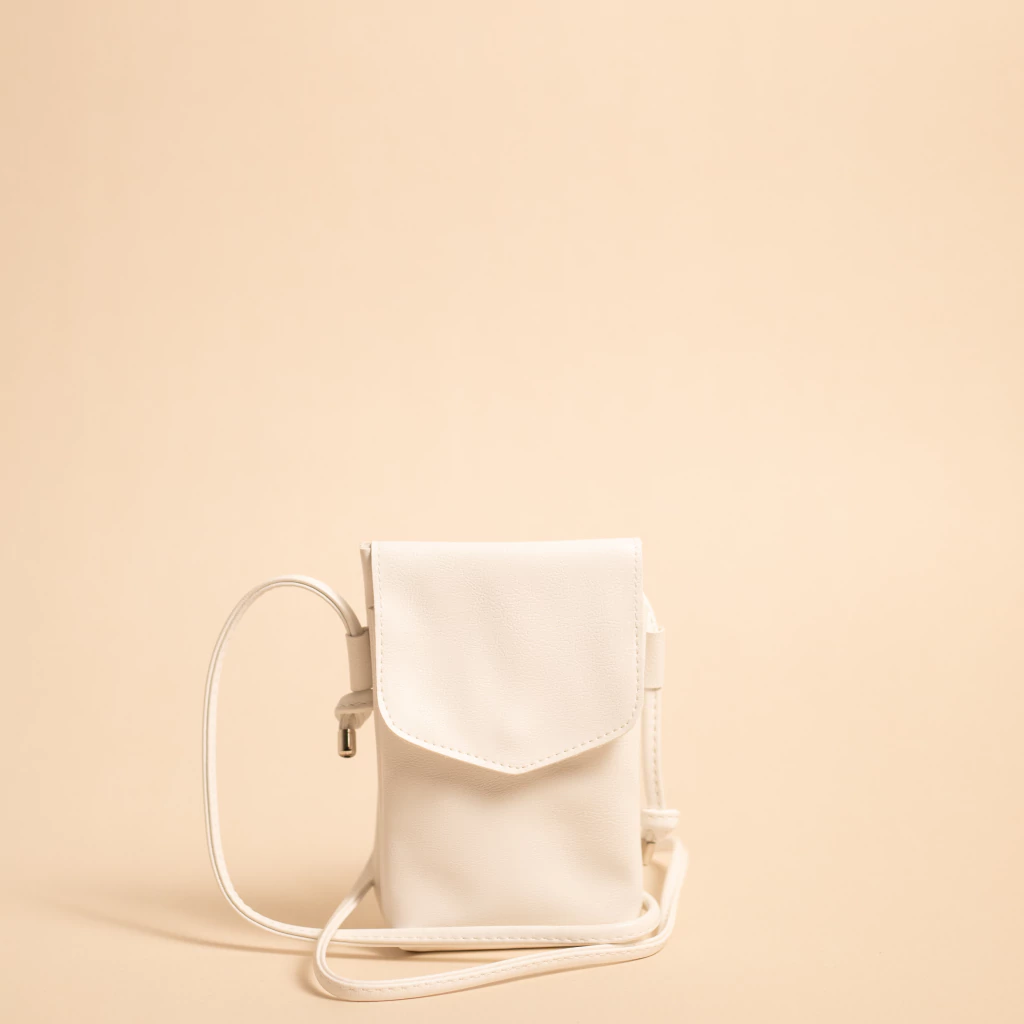 Bolsa tira colo, com fecho em botão. Tem o tamanho perfeito para colocar o essencial celular e carteira.