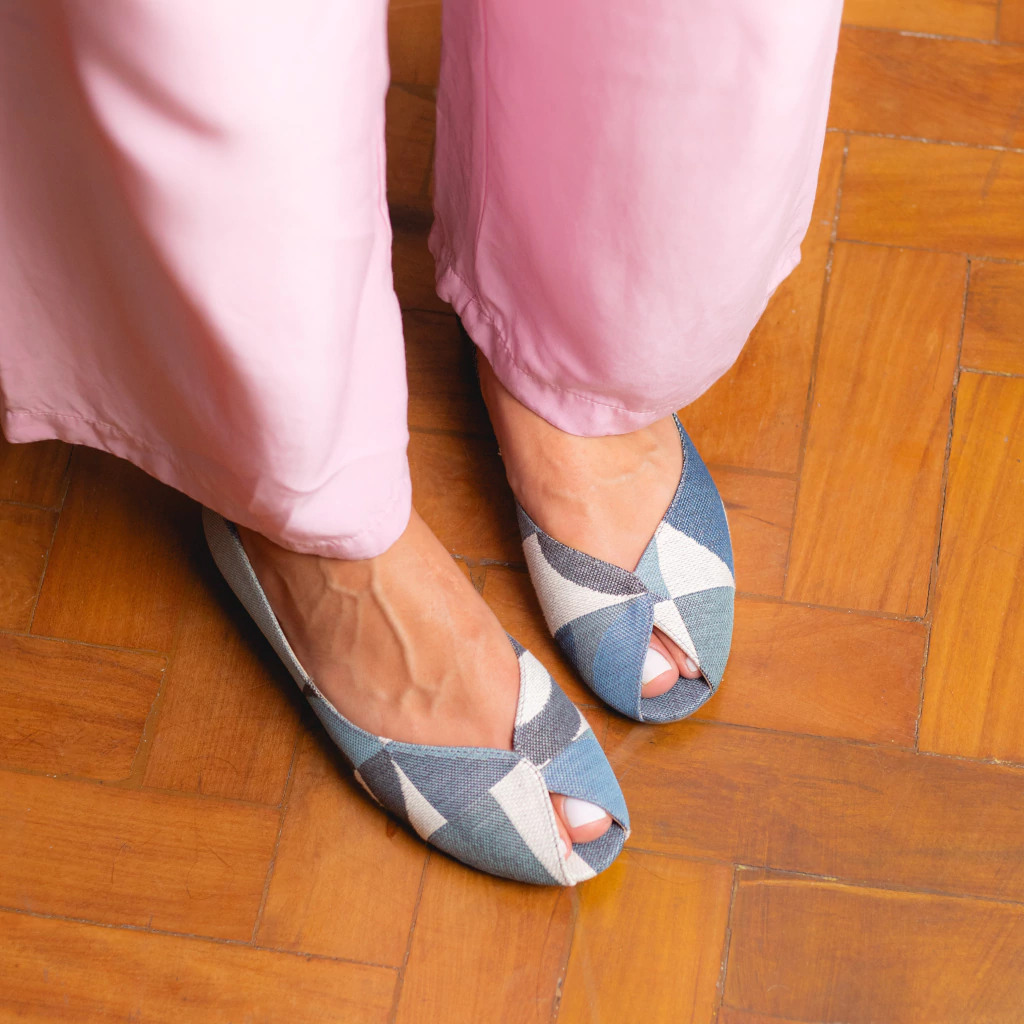 Estilo peep toe, a Monarca Azulê é confeccionada em tecido encorpado. O cabedal é estruturado para um ajuste confortável aos pés, enquanto a abertura frontal proporciona respirabilidade e um toque delicado ao design. O forro interno é feito de material macio, reduzindo atrito e proporcionando conforto ao longo do dia. A palmilha levemente acolchoada contribui para uma pisada mais confortável, tornando o modelo uma escolha prática e estilosa para diversas ocasiões.