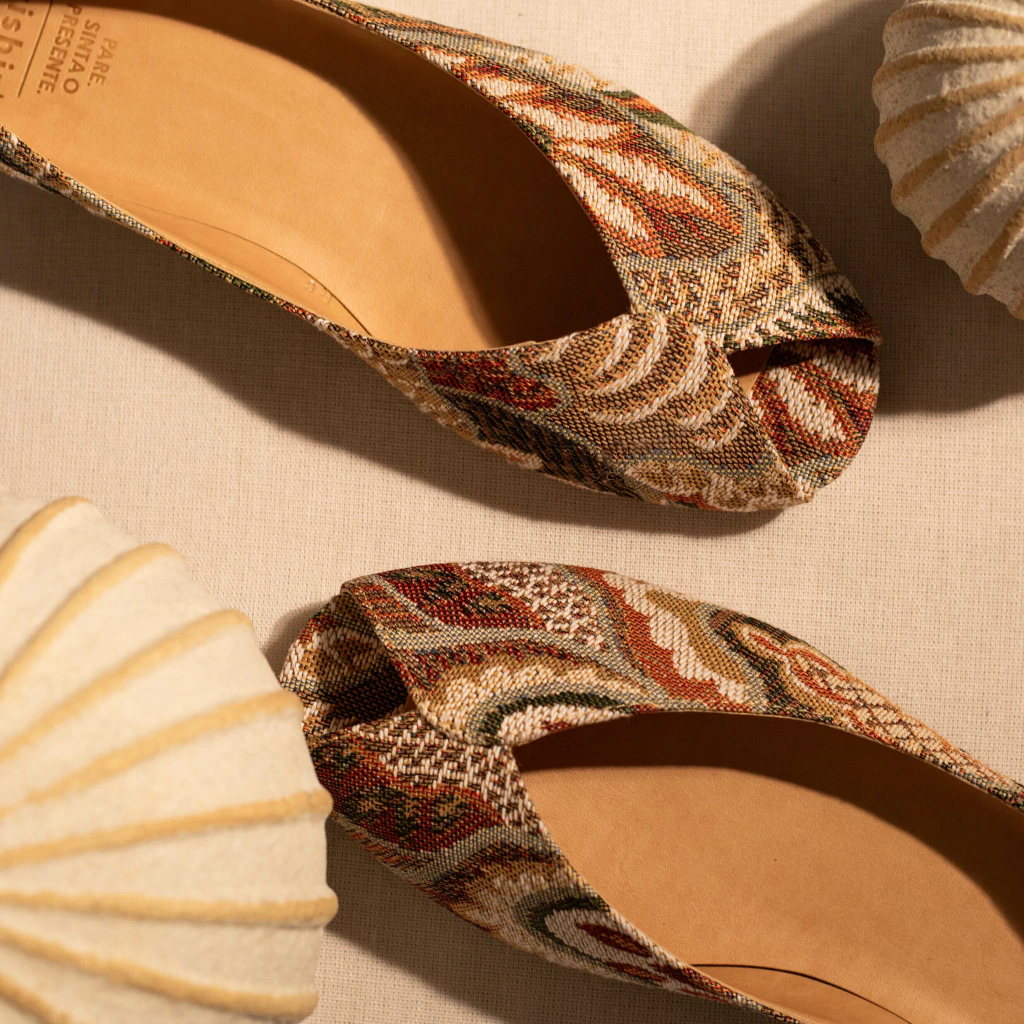 Cada sapatilha é única. O padrão do tear pode variar devido ao corte manual, o que torna seu par exclusivo. Por isso, o modelo que chega até você pode ter leves diferenças em relação à foto — e é exatamente isso que o torna especial.