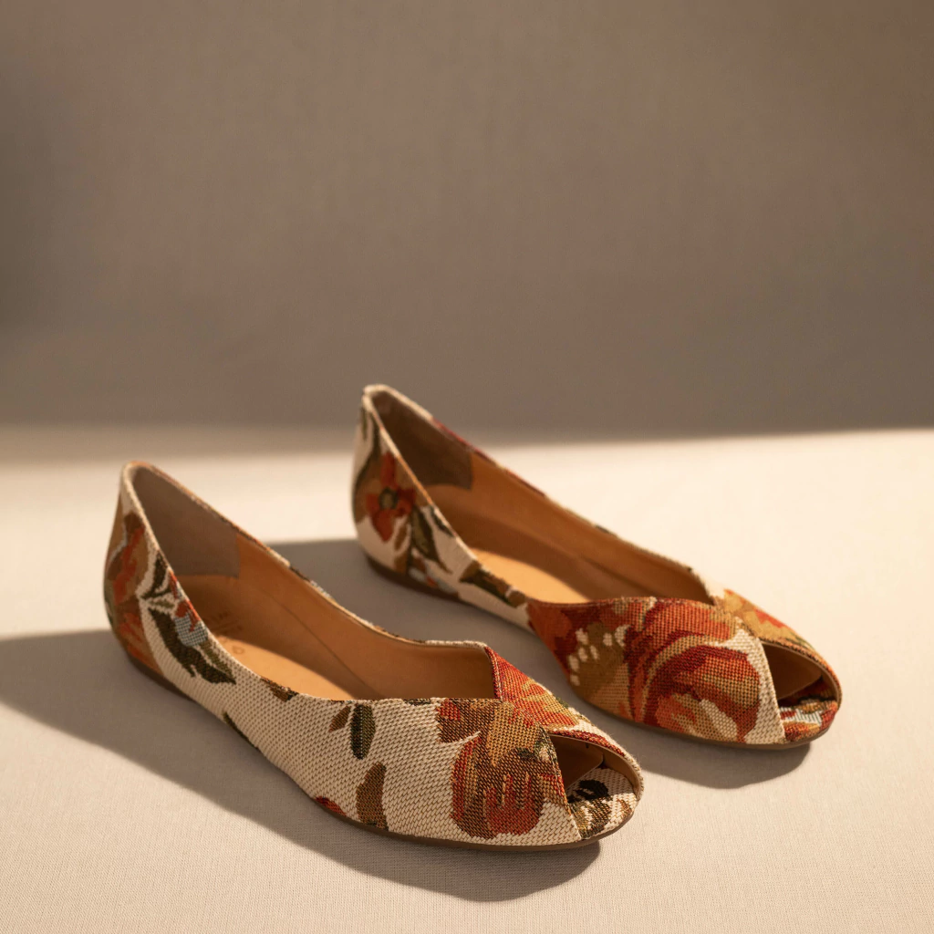 Estilo peep toe, a Monarca Tropical é confeccionada em tecido encorpado. O cabedal é estruturado para um ajuste confortável aos pés, enquanto a abertura frontal proporciona respirabilidade e um toque delicado ao design. O forro interno é feito de material macio, reduzindo atrito e proporcionando conforto ao longo do dia. A palmilha levemente acolchoada contribui para uma pisada mais confortável, tornando o modelo uma escolha prática e estilosa para diversas ocasiões.