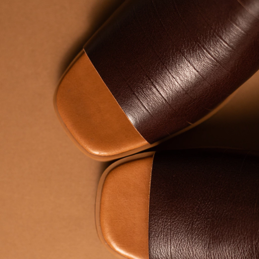 A Mule Bruma é um modelo feminino de salto baixo, confeccionado em couro legítimo. Seu cabedal é formado por tiras finas sobrepostas com acabamento pespontado, criando uma textura marcante e elegante. Possui bico arredondado com abertura frontal no estilo peep toe, que proporciona respirabilidade e conforto. O solado emborrachado garante segurança e aderência. Uma peça versátil e sofisticada para compor looks casuais ou refinados.